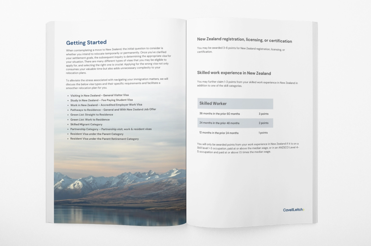 Moving to New Zealand is exciting but comes with challenges. Our free guide makes it simple, we provide the clarity and confidence you need for every step of the journey. Trust Cavell Leitch’s experienced immigration lawyers to make your transition smooth and stress-free.